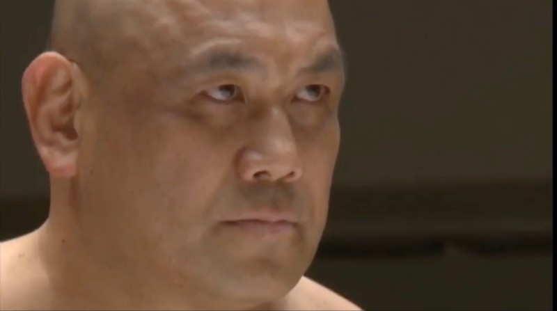 Amidst peak covid, the March 2020 Noah pro-wrestling fight between GHC Heavyweight Champion Go Shiozaki and challenger Kazuyuki Fujita took place without and audience behind the closed doors of an almost empty Korakuen Hall. It was live-streamed. The fight started with this 30 minute stare-down.